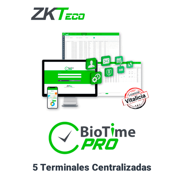 ZKTECO – BioTimePRO – STARTER / Para 5 Terminales / 500 Empleados / 1 App / 1 Multicompañia