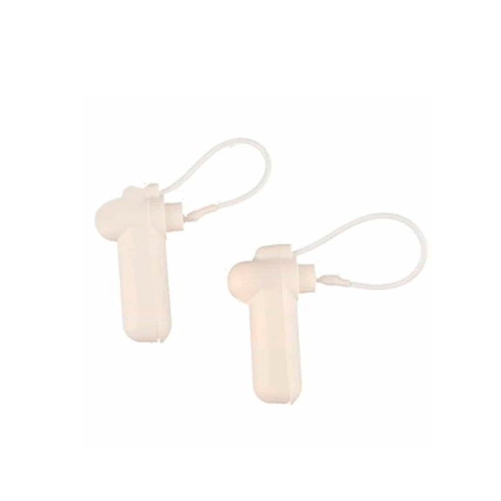Etiqueta con uso de cordón para bolso, cinturón. Frecuencia: 58KHZ. Material: plástico ABS + palo de imanes. Color blanco Tipo: Etiqueta AM. Dimensión: 43X13MM. Longitud del cordón: 10 CM.